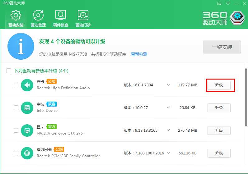 1、声卡驱动程序是否安装正常,最简单的使用驱动类软件,驱动精灵或驱动大师重装声卡驱动程序。