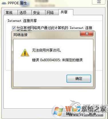 如下图:无法启用共享访问 错误0x80004005,未指定的错误