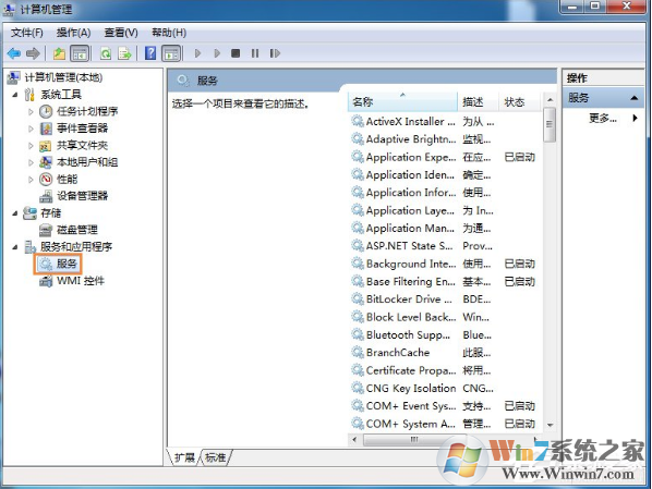 2、点击左侧的“服务和应用程序”一栏下方的“服务”选项。如图所示: