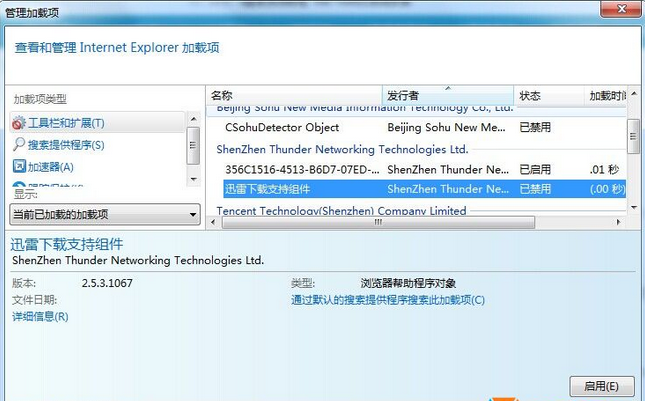 2、Win7系统使用久了以后,我们安装了很多软件,部份软件会在IE浏览器里安装加载项,加载项过多过乱的话也会引起IE浏览网页慢,卡死的情况,最好的方法就是查看加载项,把你认为不要的加载项禁用。