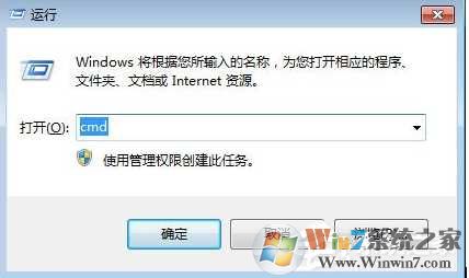 1、首先在桌面按下“Win + R”快捷键打开“运行”窗口,输入“cmd”并点击确定打开命令提示符;