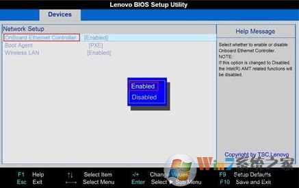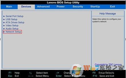 如是因为BIOS中没有开启网卡导致的,我们需要在BIOS中开启网卡。由于BIOS界面多种多样,选项各不相同,这里只简介一种,大家参照着设置。