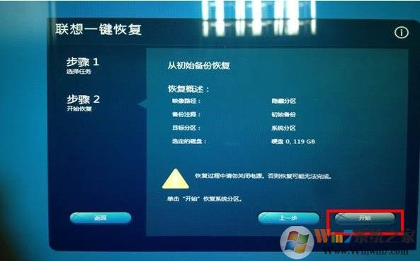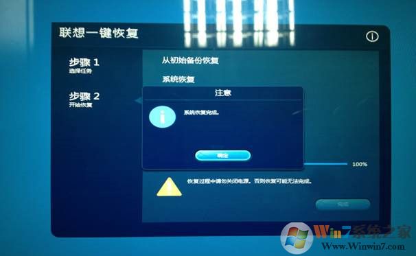 注意:如果联想笔记本硬盘被重新分区,那么一键恢复将无法恢复。