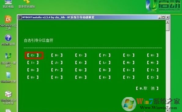 4、如果从硬盘启动失败,则可以利用相关PE工具对引导分区进行修复。我们可以利用“U启动”PE工具,在进入桌面后,点击“Windows引导启动修复”工具对引导分区进行修复。