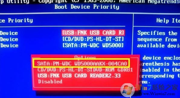 3、在进入CMOS设置界面,在“启动类型”选择界面中,选择从“硬盘启动”项,如图所示:
