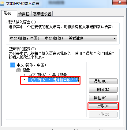 2、常规,在已安装的服务下面把自己需要用的打字软件调到第一位