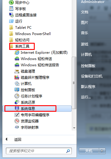 (1)依次打开 “开始-程序-附件-系统工具-系统信息”项;