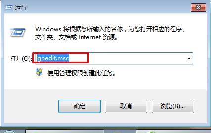 1、单击开始菜单然后打开运行窗口,在对话框中输入“gpedit.msc”命令并回车;