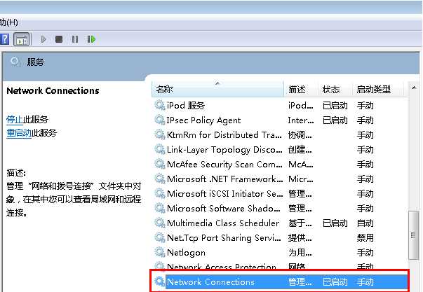2、然后在本地服务中,找到并双击“Network Connections”服务;
