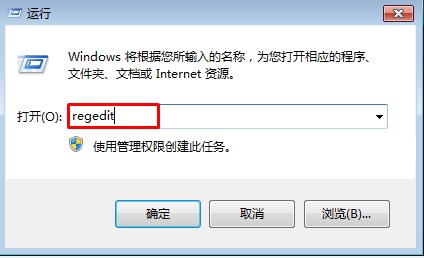 1.首先,咱们同时按下win7旗舰版电脑键盘上的win+R快捷键打开电脑的运行窗口,之后,咱们在打开的运行窗口中输入regedit并单击回车,