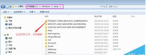 1、首先进入打开这个C:\Windows\temp\ 文件夹,将里面的所有文件都清空了