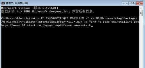 “FORFILES /P %WINDIR%\servicing\Packages /M Microsoft-Windows-InternetExplorer-*11.*.mum /c "cmd /c echo Uninstalling package @fname && start /w pkgmgr /up:@fname /norestart"