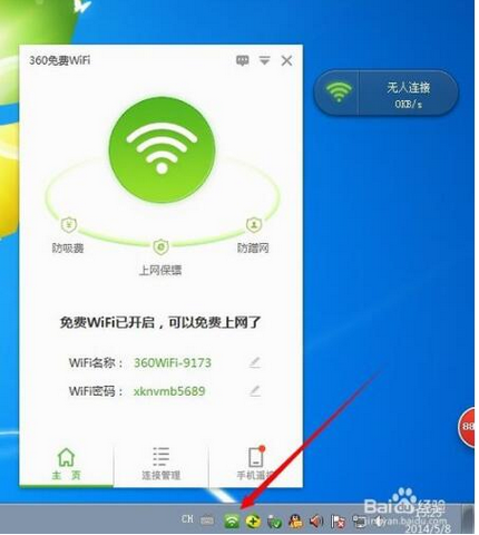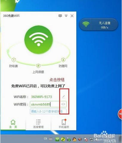 4、点击桌面右下角任务栏的免费wifi图标,打开主界面进行设置,可以编辑无线wifi的名称及密码