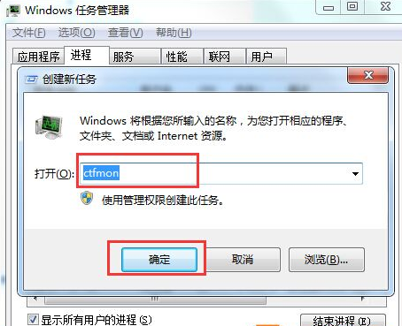 3、然后点击任务栏菜单上的 “文件”——“新建任务”,在弹出的输入框中输入ctfmon 并回车