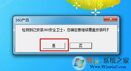 2、双击运行安装后会出现检测到360安全卫士,你确定要继续覆盖安装吗的提示;