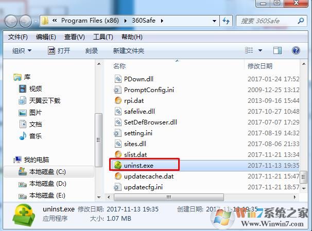 2、32位Win7系统运行:C:\Program Files \360Safe\uninst.exe