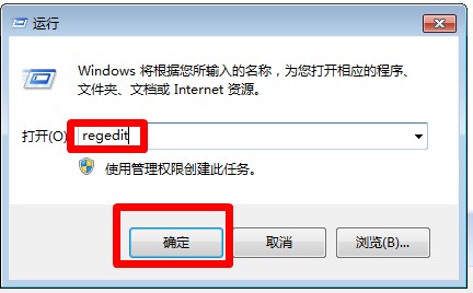 1、开始菜单,选择“运行”命令,在打开的框内输入“regedit”命令,然后点击确定。