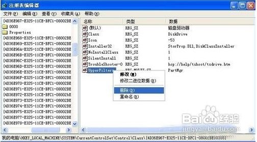 3、右键点击“UpperFilters”和“LowerFilters”,选择删除即可。