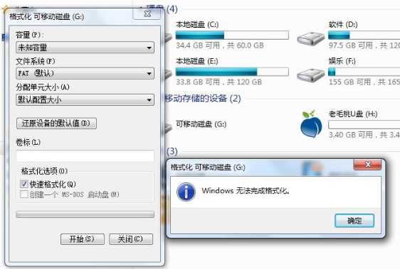 Windows无法完成格式化是由于u盘分区表丢失,起因有两点:①、u盘读写操作尚未完成即拔出u盘;②、u盘设置的策略不支持快速删除。