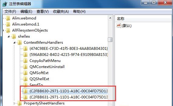 3、类似第二步,同样在HKEY_CLASSES_ROOT\AllFilesystemObjects\shellex\ContextMenuHandlers\该键值上单击右键,选择“新建→项”,并将项值命名为“{C2FBB631-2971-11D1-A18C-00C04FD75D13}”(不包含引号),这是在鼠标右键菜单里添加“移动到文件夹”菜单。