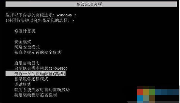 1、首先强制关机,然后按F8选择“最后一次正确的配置"启动