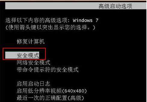 2、如果 最后一次正确的配置不能进入,那么和上面一样按F8 进安全模式;