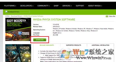 2、physx驱动地址http://www.nvidia.com/object/physx-9.16.0318-driver.html,进入网页后点击“download”进入下载页;