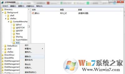 3、在ContextMenuHandlers下找到ACE文件夹,将这个文件夹删除即可。