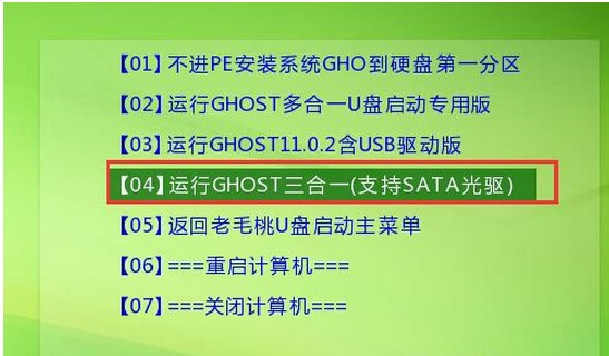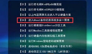 2、打开电脑使用U盘启动盘启动,在菜单中运行Ghost工具,如下图: