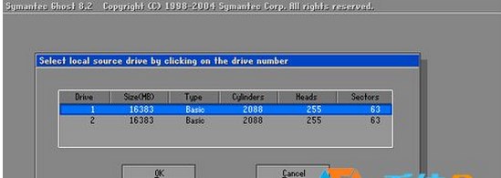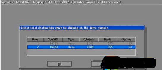 4、然后出现一个界面,让我们选择源磁盘,选择后确定新磁盘;(如果第一步没错的话,第一个是原来的磁盘,第二个则是新的硬盘);