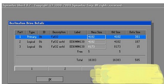 5、点击OK,如果没错的话,则会出现分区配置,分区数量则和原来硬盘一样,大小自动(如果两块硬盘不一样大的话);