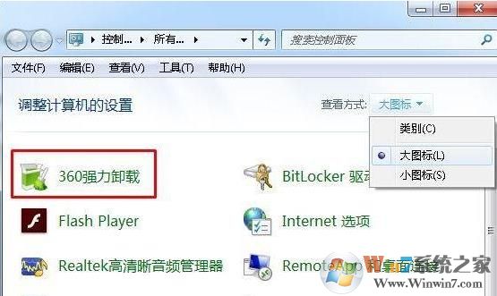 如上图,在设置为大图标或小图标时就会出现。360强力卸载。