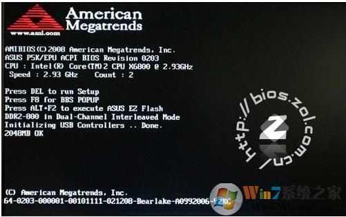 如上显示按F1进入BIOS设置,按F2读取默认设置继续启动电脑。