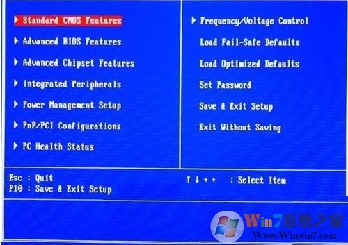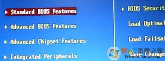 第一步:在CMOS Setup主菜单中选择“Standard CMOS Features(标准CMOS功能设置)”。