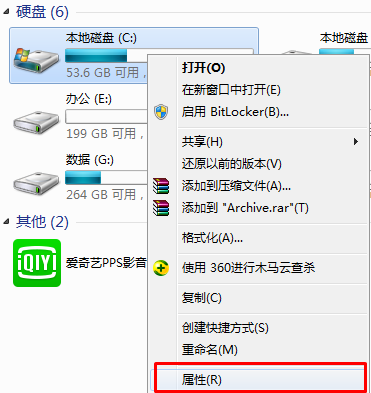 1、首先们们对磁盘进行检测修复:在C盘上点击右键,在弹出的菜单里选择属性;
