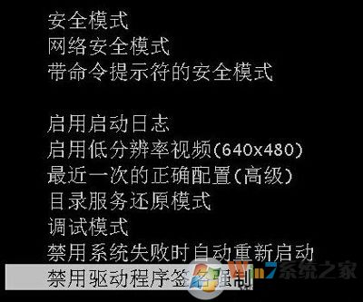 3、在打高级菜单中,选择“禁用驱动程序签名强制”按下回车,就可以进入系统了;