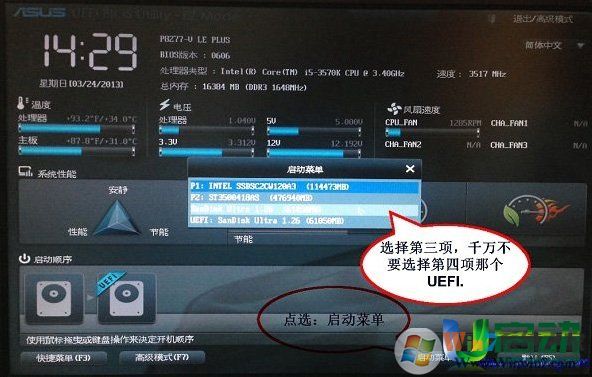 1、简单的方法,快捷键,在开机时按 ESC 就可以出现启动项选择界面,再选择U盘启动即可