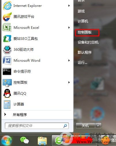 1、打开开始菜单找到控制面板,点击进入
