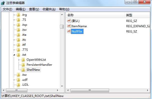 Win7右键没有新建文本文档,无法新建TXT文件的修复方法图3