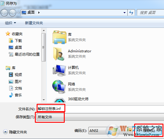 3、另存为.inf格式文档,保存时文件类型选择为“所有文件”;