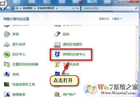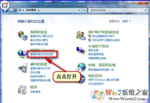 1、 依次打开控制面板—网络和共享中心 ,选择“类别”查看方式。