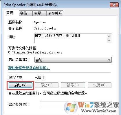 4、同时点击“启动”按钮来启用该服务。