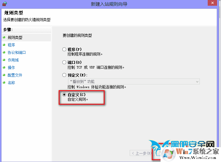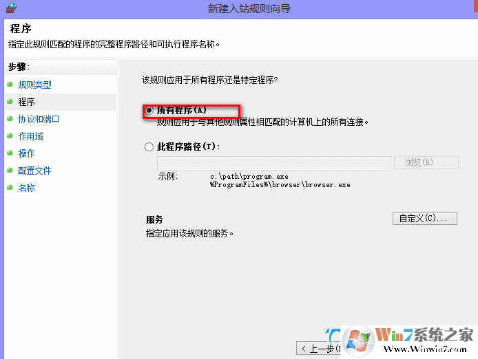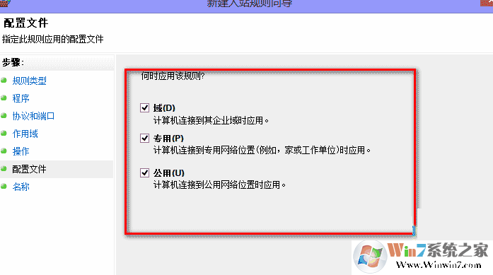 何时应用该规则,全部勾选;Windows7旗舰版下载
