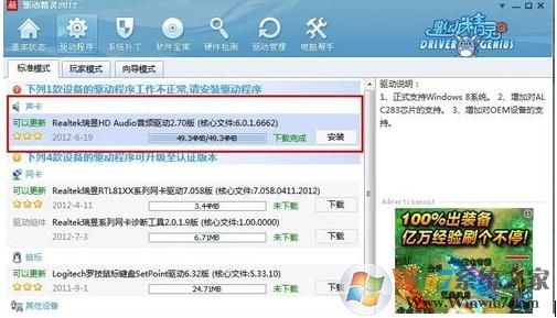 2、这时我们就需要更新声卡驱动,可以使用everest软件获取声卡的型号,然后到网上搜索最新的驱动程序。如果闲麻烦,那么直接用驱动精灵、驱动人生等软件更新驱动程序即可Windows7