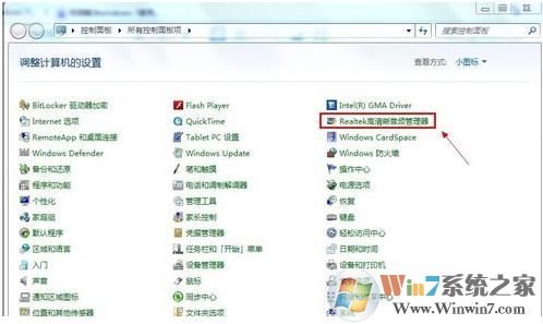 3、在安装了最新的声卡驱动之后,会在控制面板显示诸如“音频管理器”之类的设置程序,我们可以打开进行设置麦克风等设备。