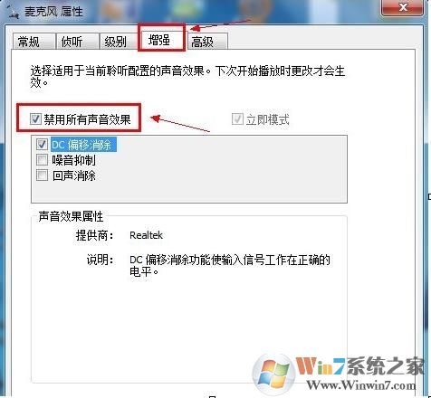 2、切换到“麦克风”标签,在“麦克风效果”选项下选择“噪音抑制”和“回声消除”功能,同时调节麦克风的音量等设置。