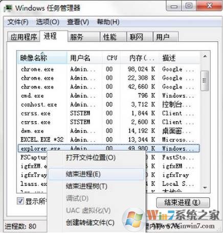 在进程中找到并结束“Explorer.exe”进程。结束任务后,桌面、任务栏,资源管理器都会消失。