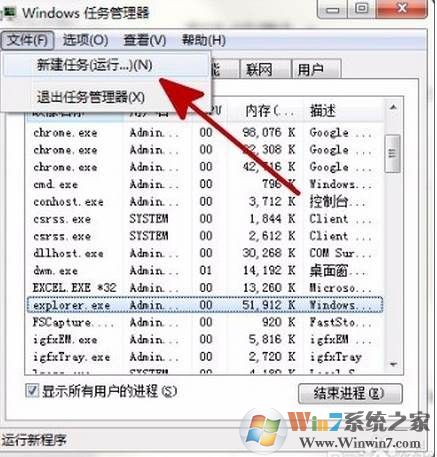 点击任务管理器菜单栏的"文件"-“新建任务”,然后新建“Explorer.exe”进程运行,此时桌面会重新恢复,再尝试复制粘贴即可解决问题。
