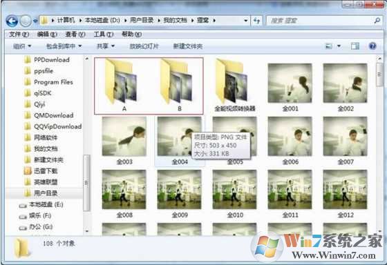 由于联系表一次只支持每次100张图片的合成量,所以我们需要对105张图片进行如下分离整理,A文件夹放入5张图片(1-5),B文件夹放入100张图片(6-105)。
