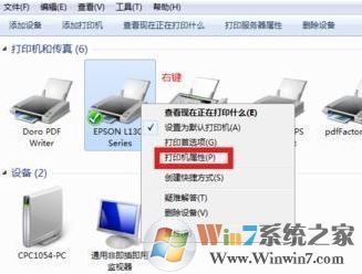 5、纸张大小添加完只完成了成功打印文件的第一步,接下来还需要到打印机中去做纸张设置。在要打印的打印机右键,选择“打印机属性”。